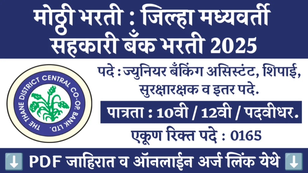 DCC Bank Bharti 2025 : जिल्हा मध्यवर्ती सहकारी बँक लि. यांच्या आस्थापनेवरील व अधिपत्याखाली असलेले ज्यु. बँकिंग असिस्टंट या श्रेणीतील …